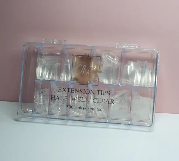 De verpakking bevat maar liefst 500 losse tips, verdeeld over 10 verschillende maten, zodat je altijd de juiste maat bij de natuurlijke nagel kunt kiezen.